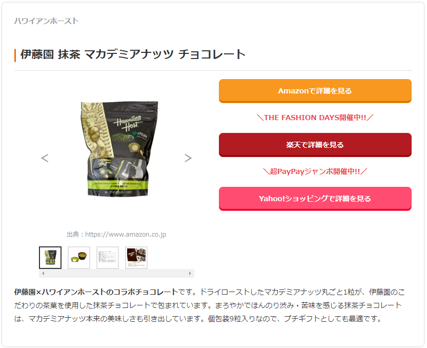 情報メディア「ランク王」(ランク王株式会社)の、「ばらまきギフト用チョコレートおすすめ20選!高級で美味しい人気チョコも」のコーナーで、「伊藤園抹茶マカデミアナッツチョコレートスタンドバッグ(9粒)」が紹介されました。